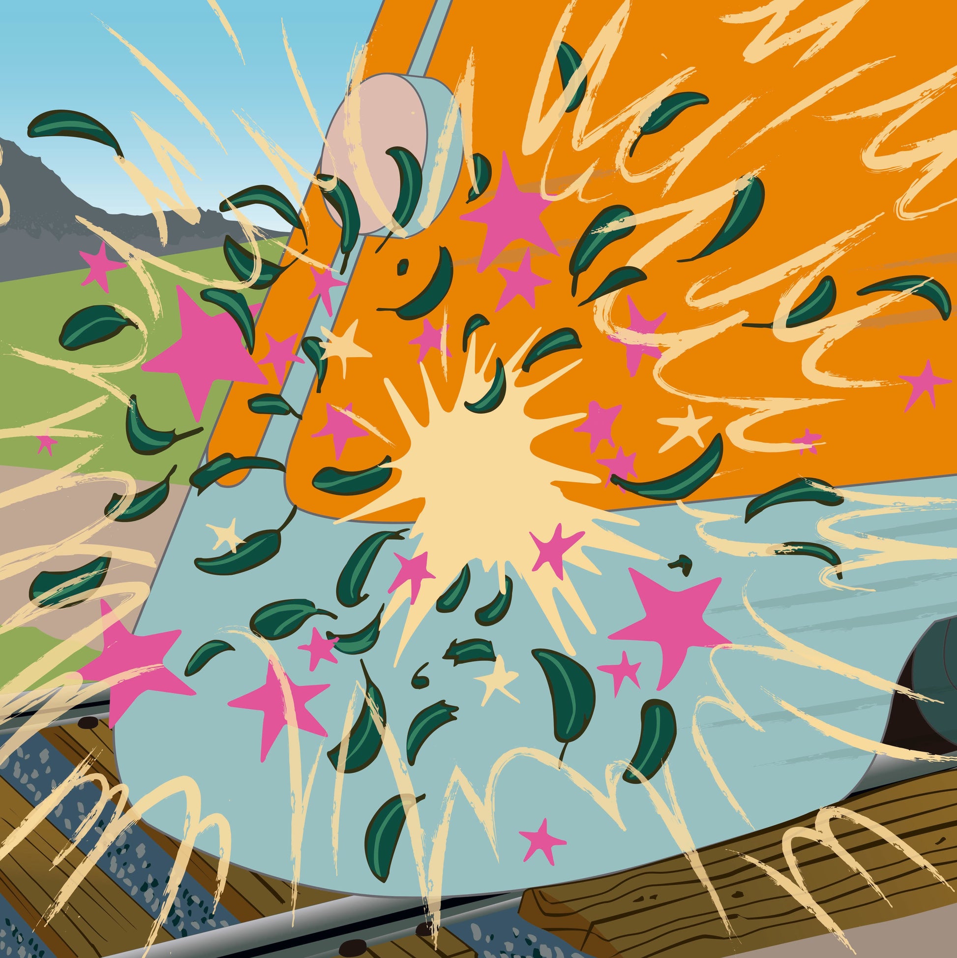 ‘Dances / Curses’ - their lucky thirteenth record - is the work of six musicians at the peak of their considerable powers of intuition and inspiration.Constant motion is also something Hey Colossus know a little about, now into their eighteenth year as a band in a never-ending search for new trouble and new epiphanies. When this iteration of the band - which came together around the making of their last release, 2019’s ‘Four Bibles’, geographically spread between Somerset, Watford, London, Nottingham and Sheffield - first began work the chemistry apparently took care of itself, with their meetings at weekend rehearsals seeing them undergo a process less like jamming and more like a particularly intensive form of instant composition. Whatever sparks were spontaneously flying in these initial sessions, they gave rise to enough material to make 'Dances / Curses' a double record, running the gamut from the rhythmically-driven, infectiously melodic songcraft of ‘Donkey Jaw’ and ‘Medal’ via the slow-burning atmospherics of ‘U Cowboy’ to the mightily motorik-driven 15 minute travelogue that is ‘A Trembling Rose’, which takes in a plethora of unified headspaces in richly cinematic style.