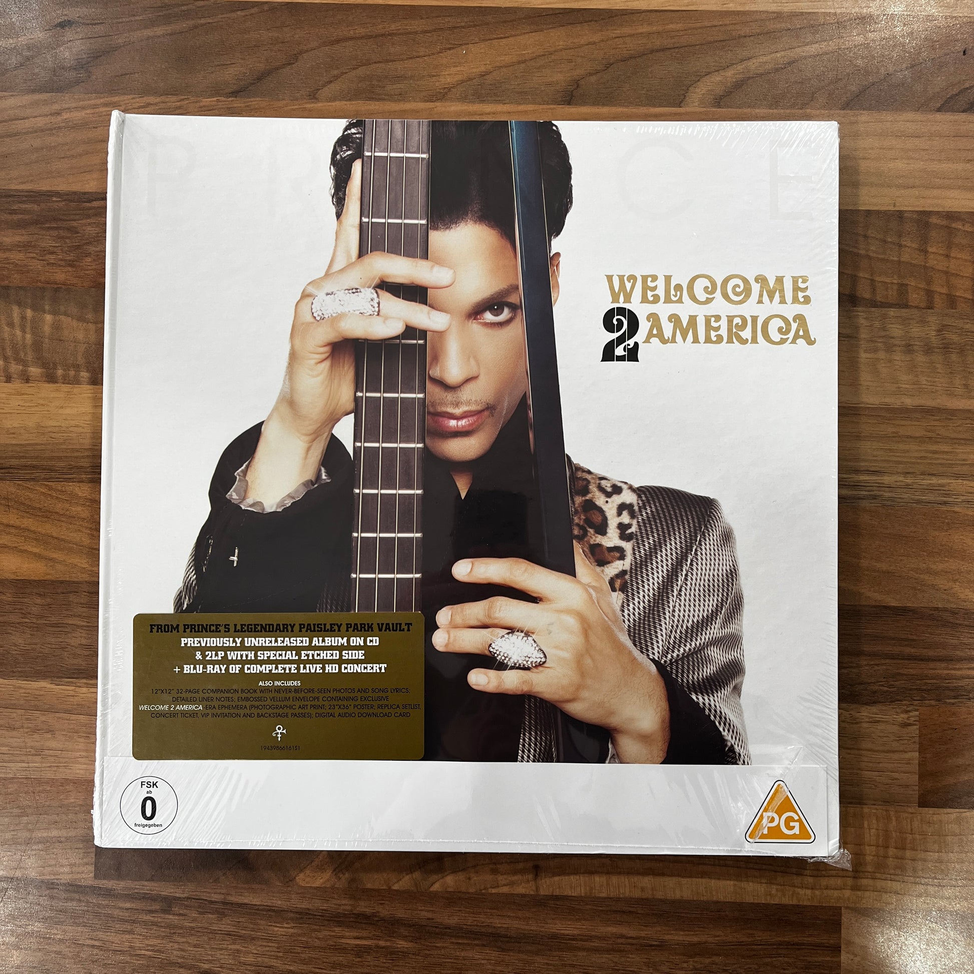 Previously unreleased album on CD & 2LP with special etched side + Blu-ray of complete live HD concert. Also includes 12" x 12" 32-Page companion book with never-before-seen photos and song lyrics; detailed liner notes; embossed vellum envelope containing exclusive Welcome 2 America-era ephemera (photographic art print; 23" x 36" poster; replica setlist, concert ticket, VIP invitation and backstage passes); digital audio download card
